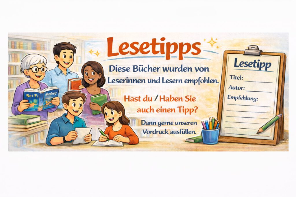 Also Augen auf beim nächsten Besuch, wo Sie unsere Lesetipps entdecken! Gerne helfen wir weiter.