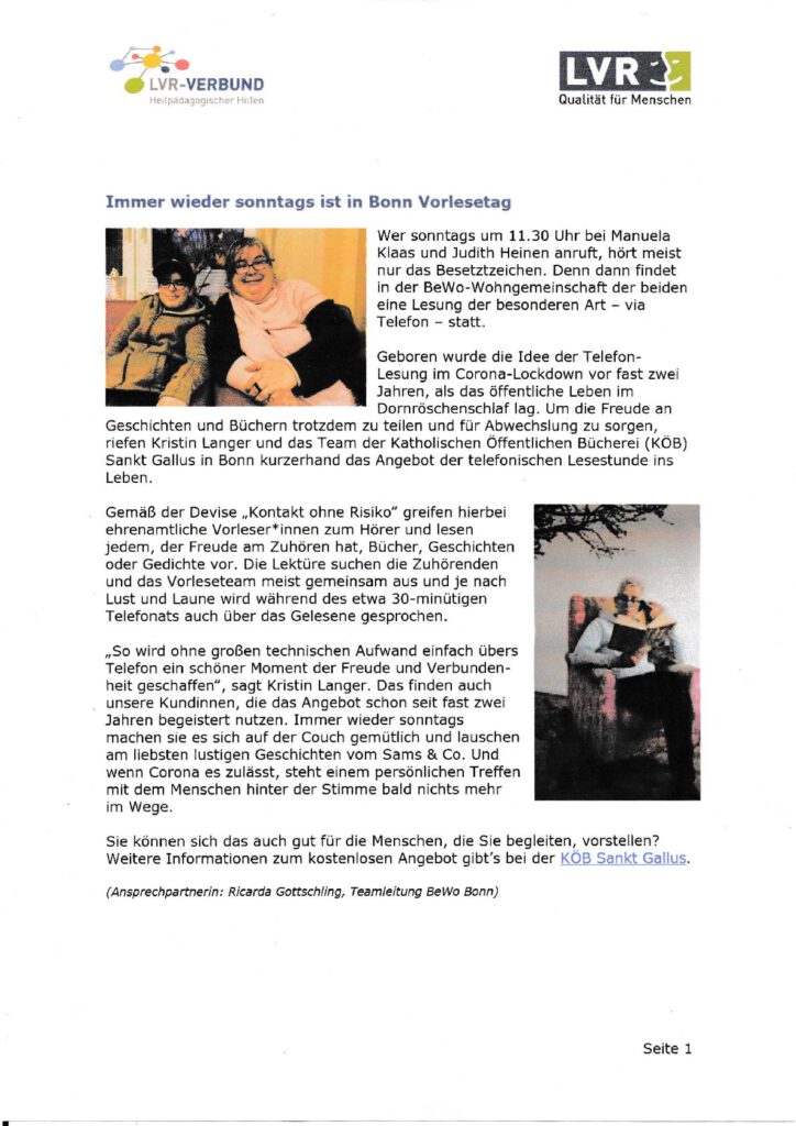 Berichte über unsere Aktion “Vorlesen am Telefon”
