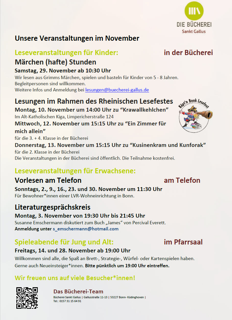 Im November können Sie sich auf folgende Veranstaltungen freuen:
